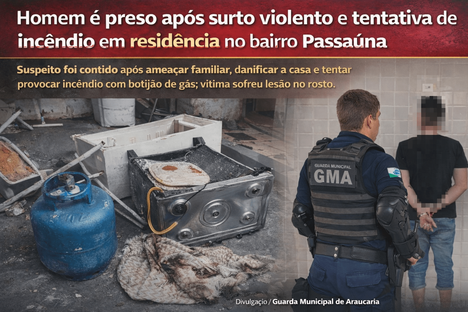 Homem é preso após agredir familiar e tentar incendiar residência no bairro Passaúna