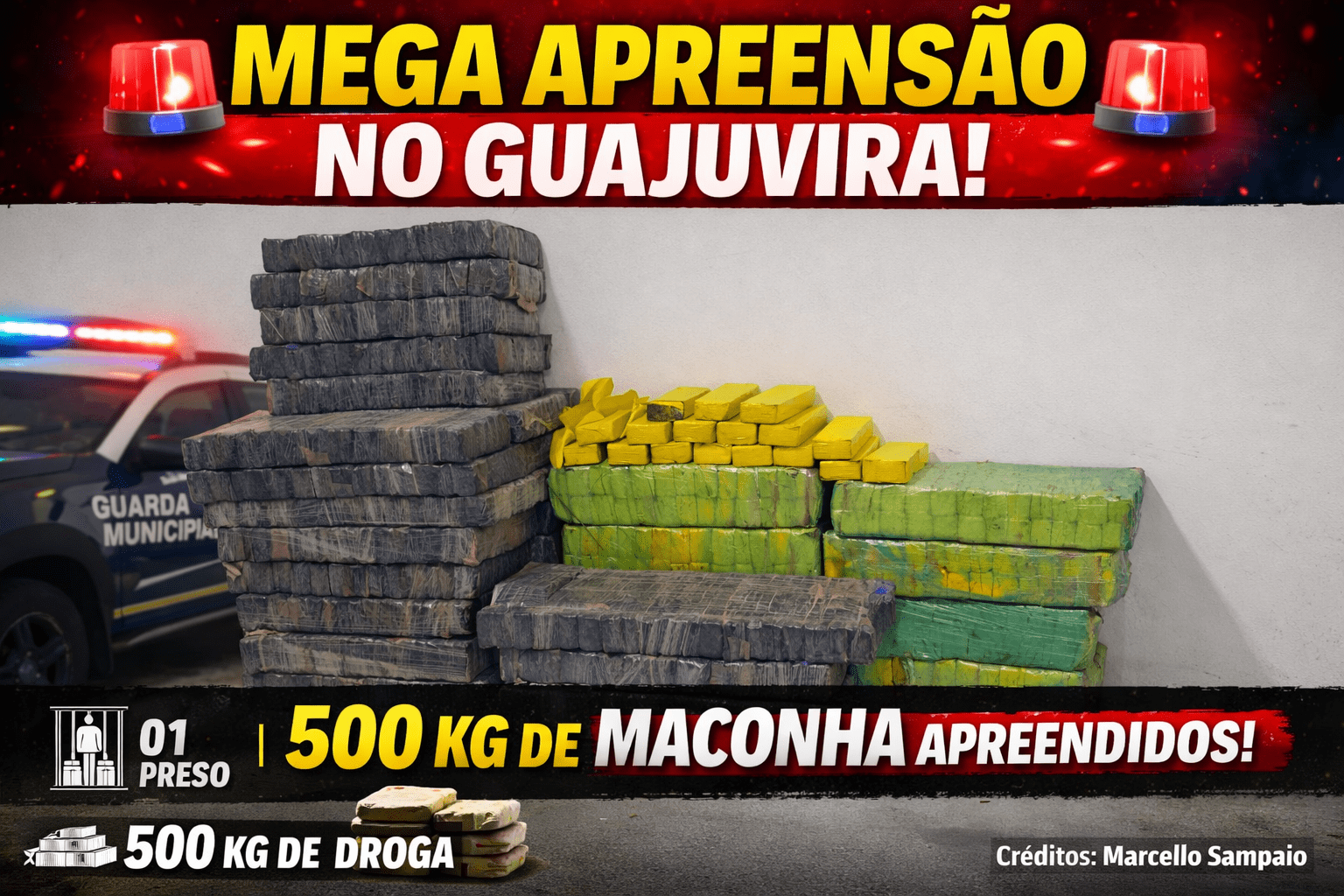 Uma grande apreensão de drogas foi registrada na madrugada desta terça-feira (17) na região do Guajuvira. A Guarda Municipal realizou a prisão de um suspeito e retirou de circulação cerca de 500 quilos de maconha durante uma operação de patrulhamento…