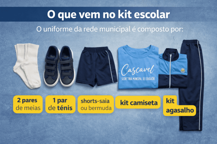 A Prefeitura de Cascavel, por meio da Secretaria Municipal de Educação de Cascavel, orienta pais e responsáveis sobre o período de solicitação dos uniformes escolares para o ano letivo de 2026. O processo será realizado exclusivamente online, pelo sistema www.cascavel.app, garantindo mais praticidade, organização e agilidade no atendimento às famílias.