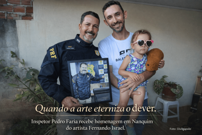 Em um gesto que une arte, reconhecimento institucional e respeito à trajetória pública, o Inspetor da Polícia Rodoviária Federal (PRF), Pedro Faria, foi homenageado pelo artista plástico Fernando Israel com a entrega de uma obra exclusiva executada em Nanquim.