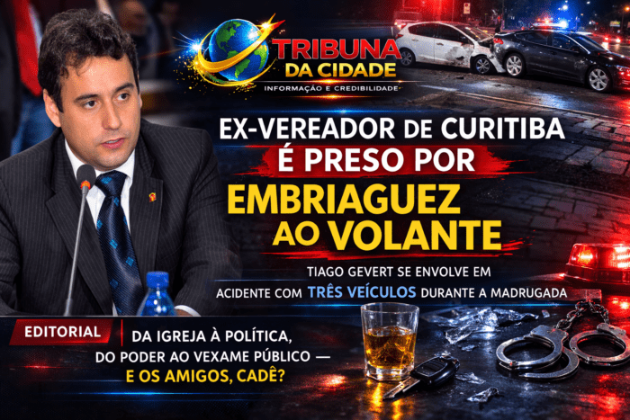 Uma ocorrência policial registrada na madrugada desta sexta-feira (27) terminou com a prisão em flagrante do ex-vereador de Curitiba, Tiago Gevert, após um acidente de trânsito envolvendo três veículos no bairro Hauer, em Curitiba.