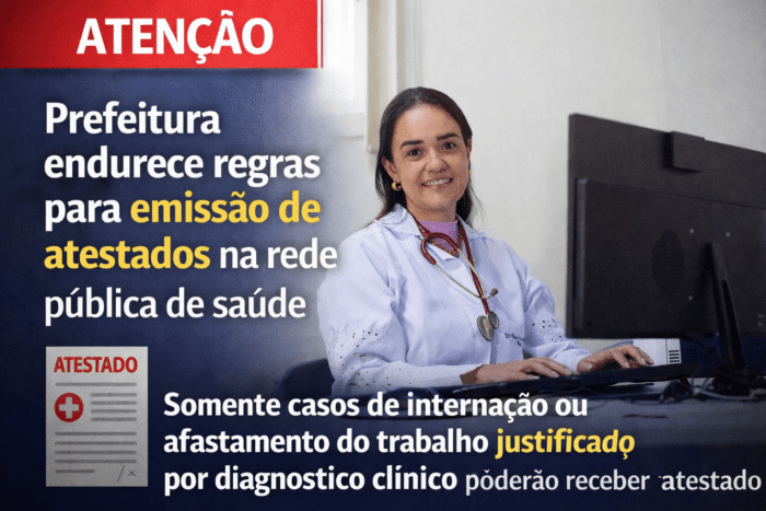 A Prefeitura de Cascavel, por meio da Secretaria Municipal de Saúde, anunciou a implementação de um novo regulamento para a emissão de atestados médicos em toda a rede pública de saúde. A medida será oficializada por decreto a ser publicado no Diário Oficial do município neste sábado (21) e passa a valer imediatamente em todas as unidades, incluindo UBSs, USFs e UPAs.