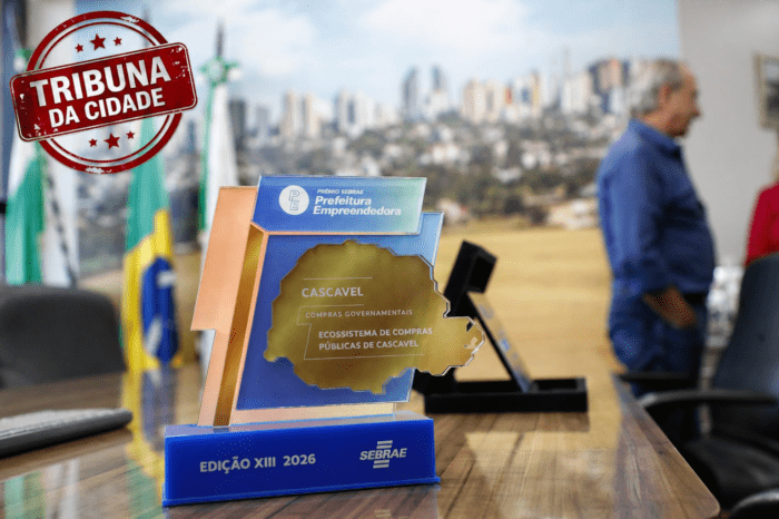 A premiação foi entregue durante cerimônia realizada em Curitiba e reconhece o projeto Ecossistema de Compras Públicas de Cascavel, iniciativa que agora avança para a etapa nacional, marcada para maio, em Brasília. Na manhã desta sexta-feira (24), o prefeito Renato Silva recebeu oficialmente o prêmio em seu gabinete, destacando o trabalho coletivo que resultou na conquista.