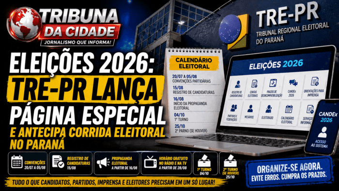 O Tribunal Regional Eleitoral do Paraná lançou, neste mês, uma página especial dedicada às Eleições 2026, reunindo em um único ambiente digital informações essenciais para candidatos, partidos, imprensa e eleitores. A iniciativa concentra dados como registro de candidaturas, contas eleitorais, prazos de desincompatibilização, acesso ao sistema CANDex e orientações operacionais, organizados em dez áreas temáticas com o objetivo de facilitar a navegação e reduzir erros já no início do calendário eleitoral.